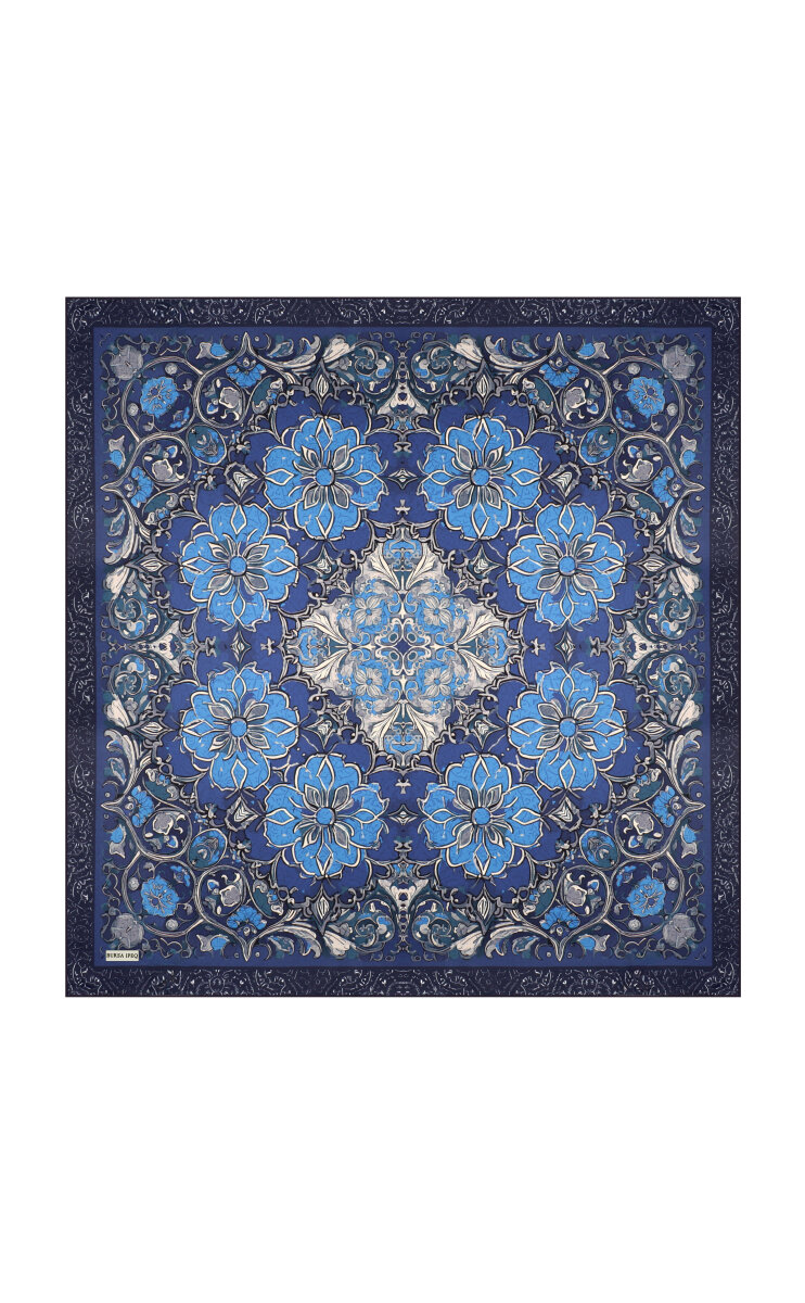 وشاح حريري مائل بنقشة عرق اللؤلؤ الأزرق