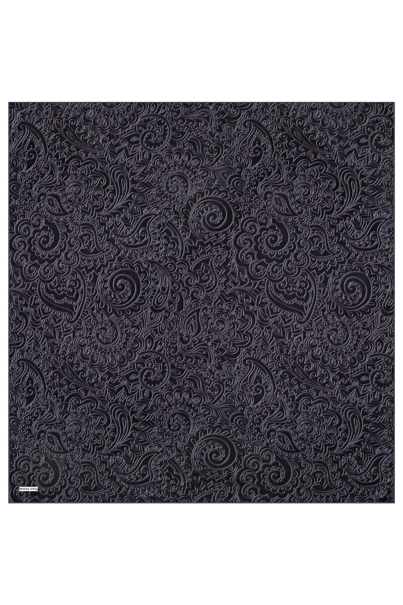 وشاح حريري أسود منقوش بنقشة فنية