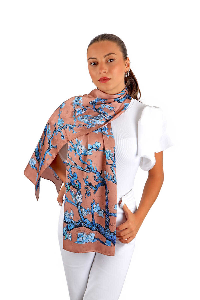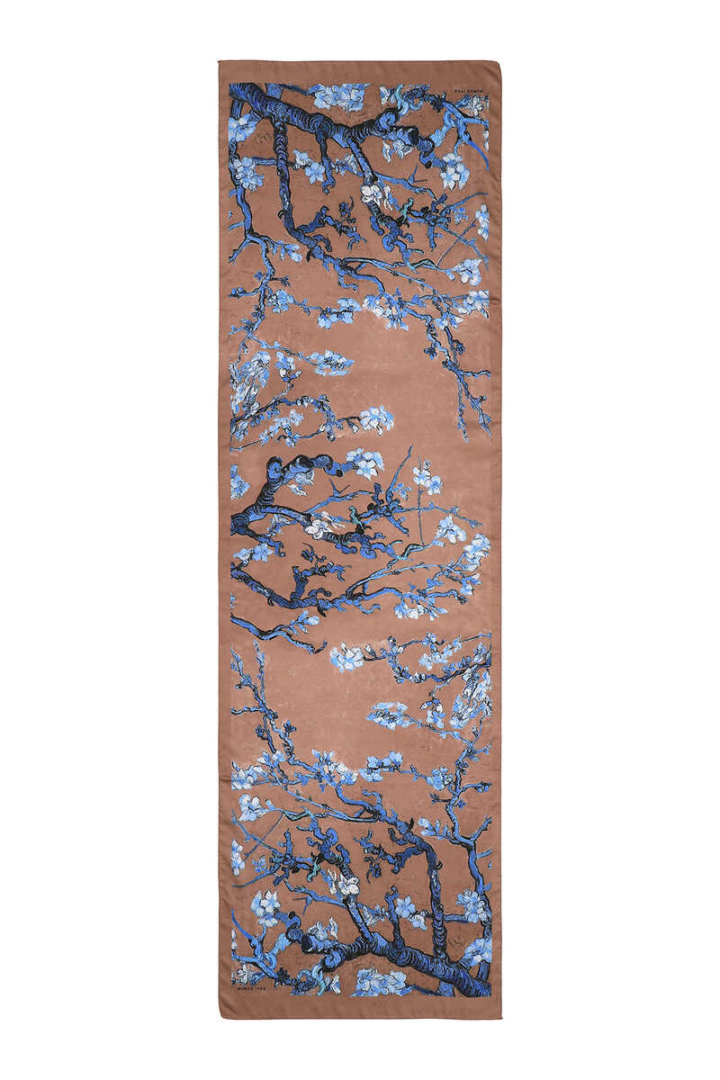 وشاح حريري بزهرة اللوز والشوكولاتة