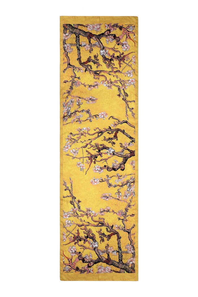 وشاح حريري بلون الخردل الداكن وزهر اللوز