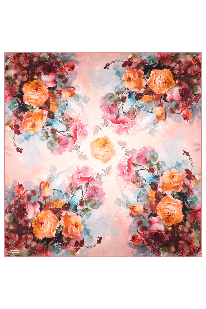 وشاح حريري سورا بنقشة الكاميليا السلمونية الداكنة