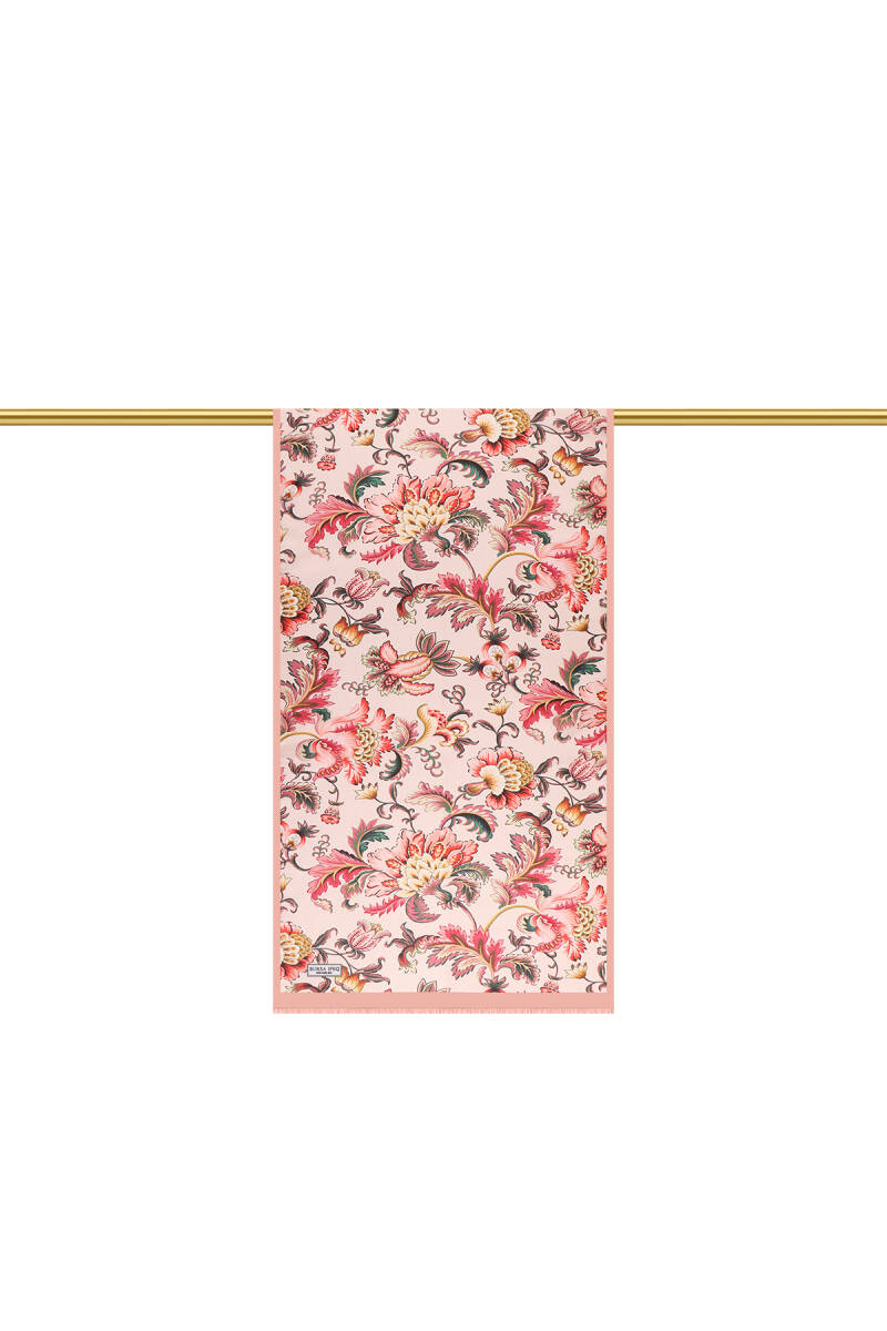 وشاح حريري من الفوال بنقشة زهور السلمون