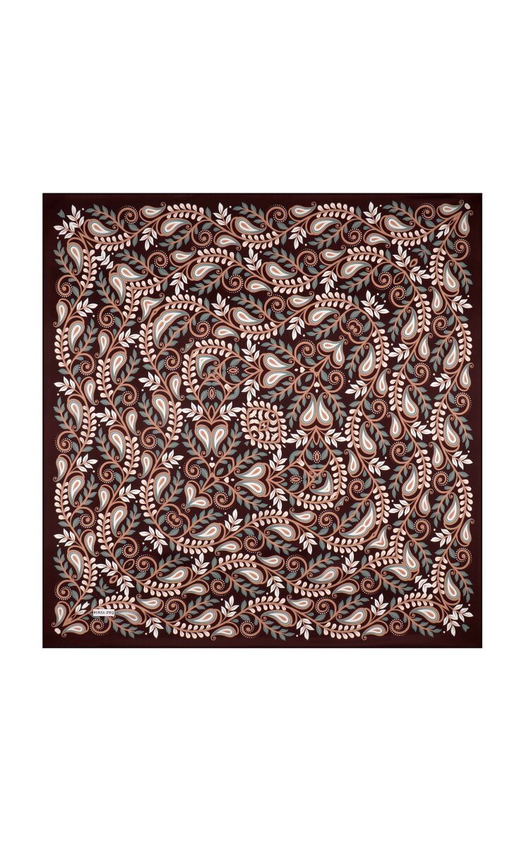 وشاح حريري بني بنقشة برج العذراء