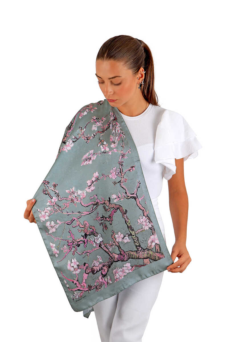 وشاح حريري بزهر اللوز الرمادي