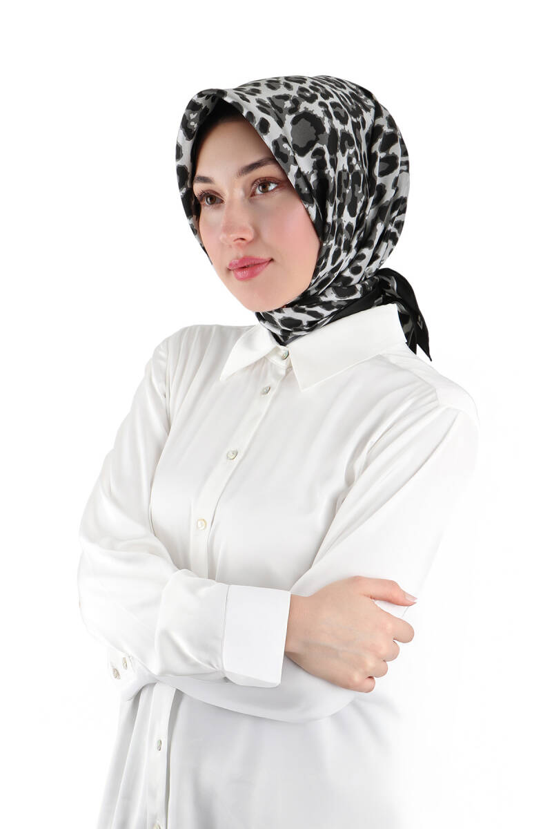 وشاح حريري مائل بنقشة جلد النمر الدخاني