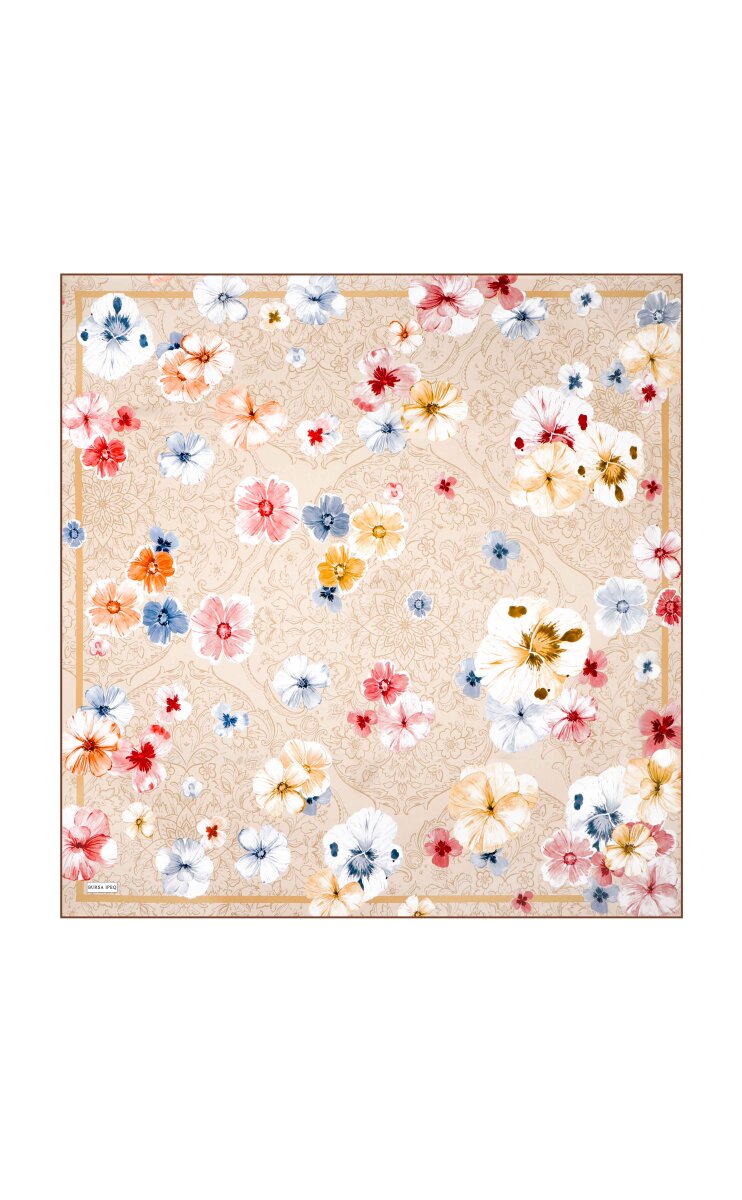 وشاح حريري مزدوج الجوانب بنقشة زهرة الخشخاش باللون البيج