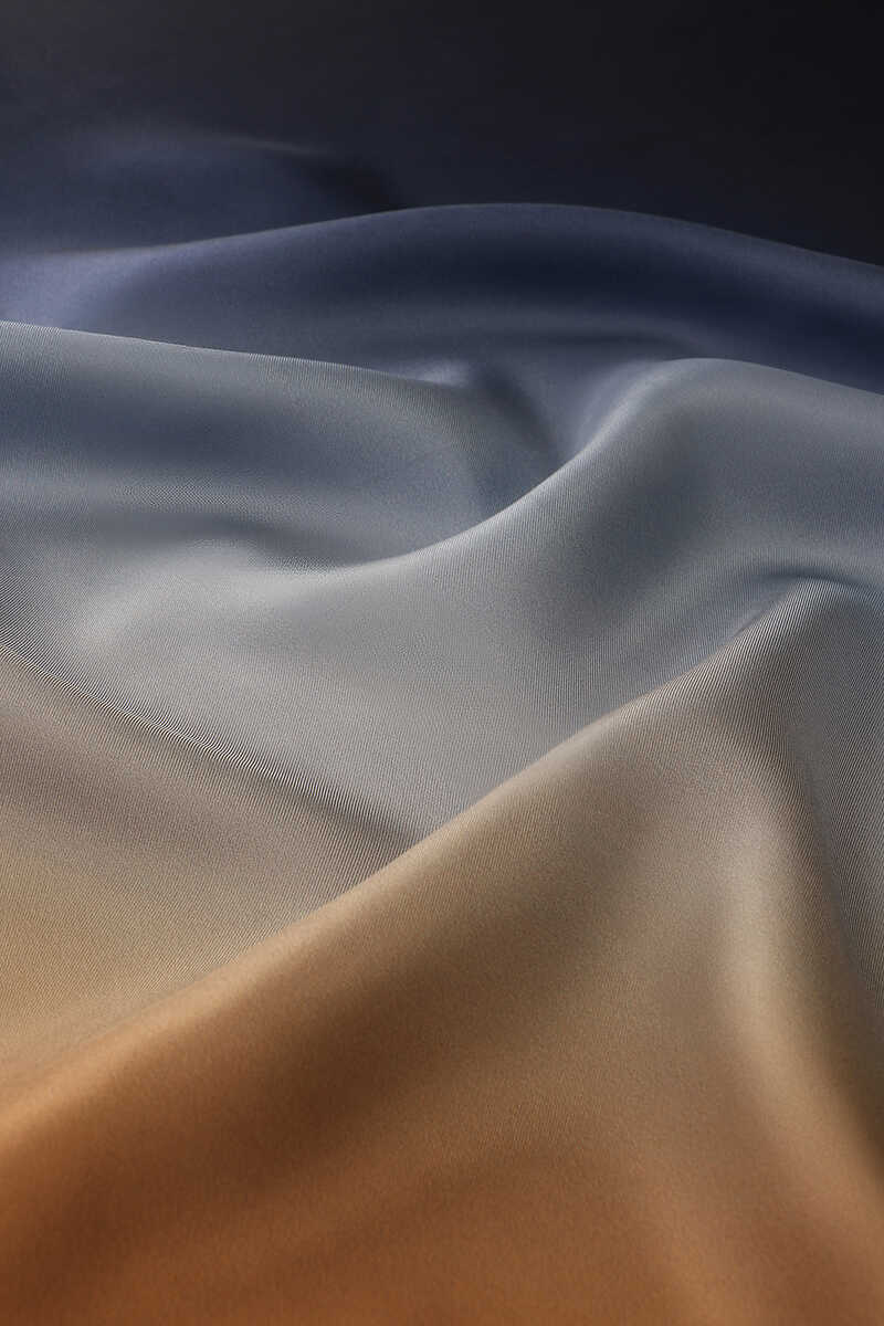 وشاح مربع من الحرير بلون أزرق داكن وبرونزي متدرج