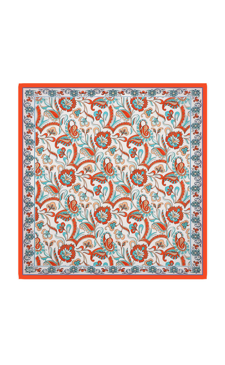 وشاح مربع من الحرير بنقشة زهرة الرمان
