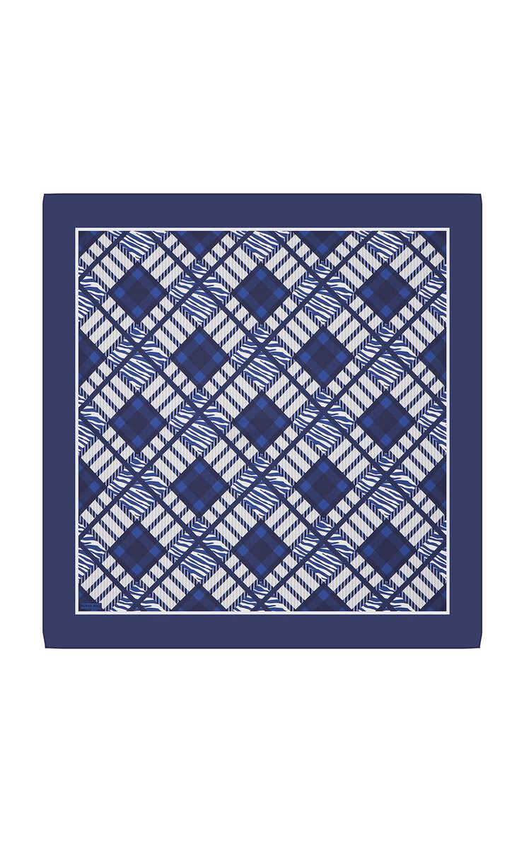 وشاح مربع من الحرير بنمط بلاط بلون أزرق داكن مع وضع مستقيم وقوي يتوج مظهرك البسيط والبسيط يجذب كل موسم بمجموعة الألوان الواسعة في تصميمه الذي يرمز إلى التأكيد على البساطة، بعيدًا عن كل التفاصيل. منتجنا؛ يوفر سهولة الاستخدام بمحتواه من الحرير المائل بنسبة 100% وأبعاده 90 × 90 سم.