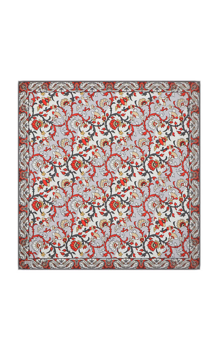 وشاح مربع من الحرير الفوال بنمط شال رمادي