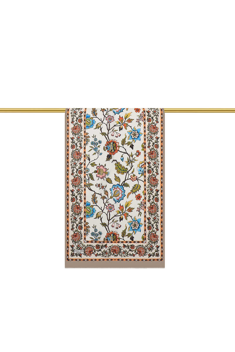 وشاح حرير من الفوال بنقشة زهرة الزنبق باللون البيج