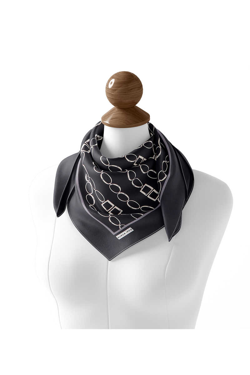 With the Anthracite Chain Pattern Twill Silk Square Scarf, which is reflected in the unique elegance of silk, you will feel the atmosphere of unity in different beauty. Our product; It offers comfort of use with its 100% Silk content and 90x90cm dimensions.