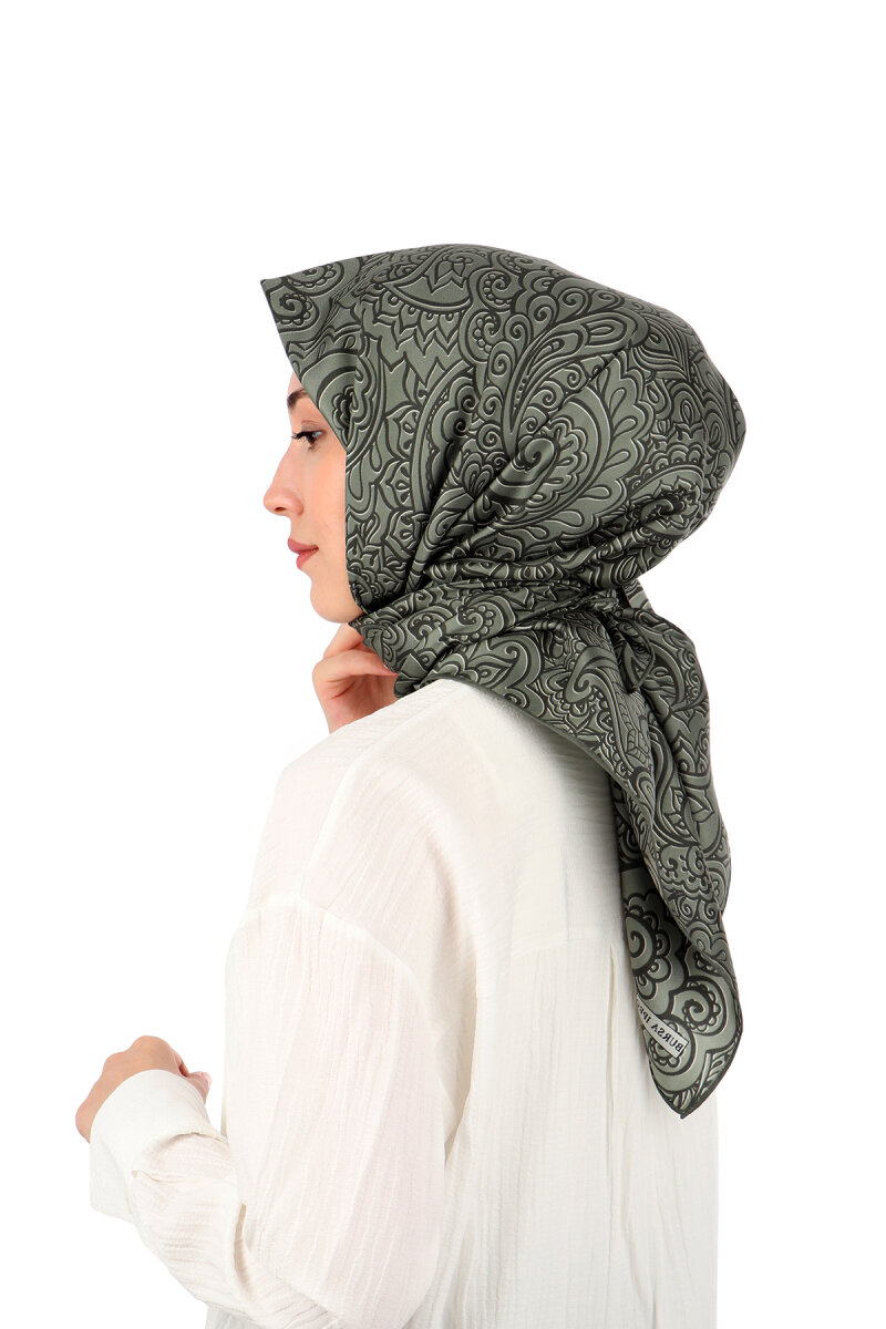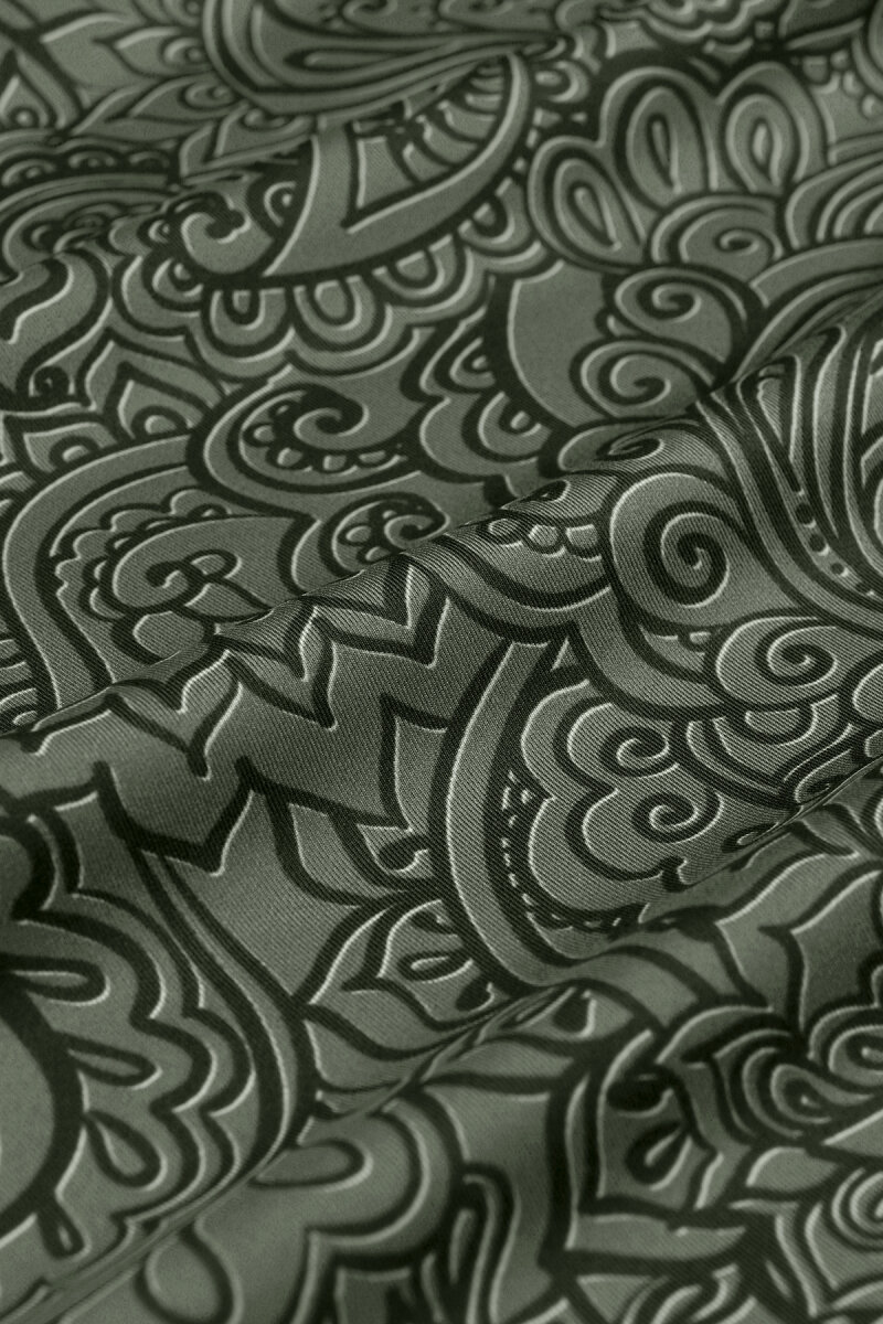 symbol of timeless elegance and chic, the Khaki art pattern twill silk scarf combines classic motifs with a modern touch. Vibrant color transitions and elegant paisley patterns make it an indispensable piece for both everyday outfits and special occasions. Made from 100% twill silk and measuring 90 x 90 cm, it offers ease of use.