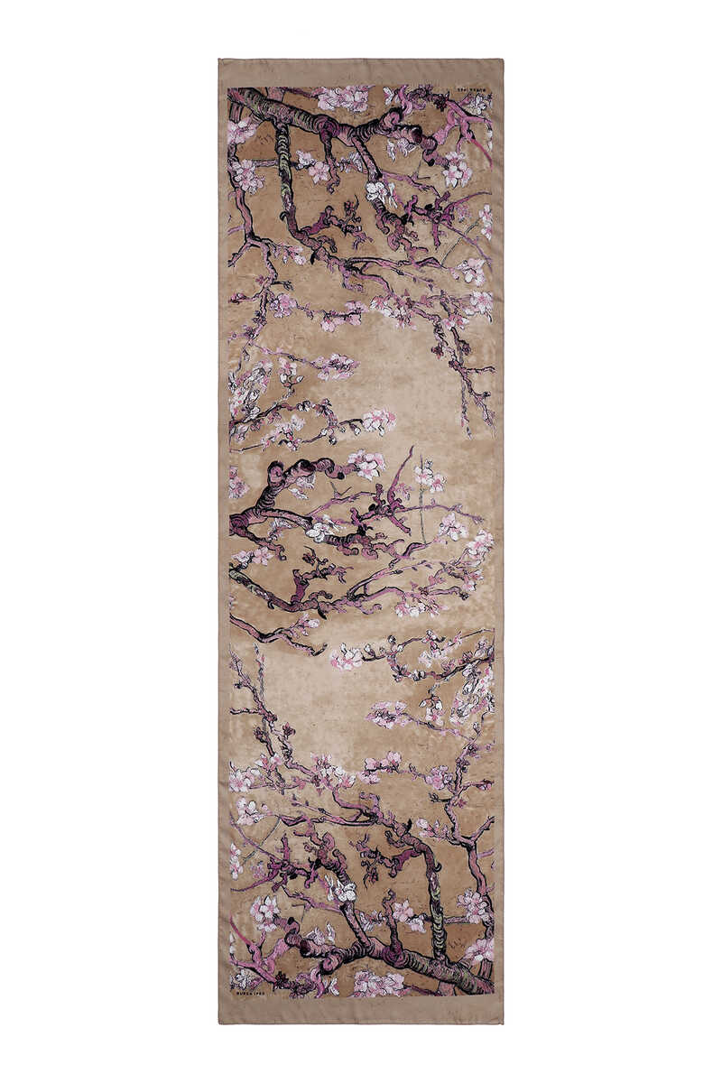 Camel Badem Çiçeği desenlerinin ipeksi kumaş dokusu ile parlak ve canlı renklerle bir araya geldiği eğlenceli ve aynı zamanda klasik bir seçim… Çiçeklerin ipeksi dokuya büründüğü halleri ile hayata enerji katın! Ürünümüz: %100 ipeksi rayon kumaşı, 45 x 160 cm boyutlarıyla kullanım kolaylığı sunuyor.