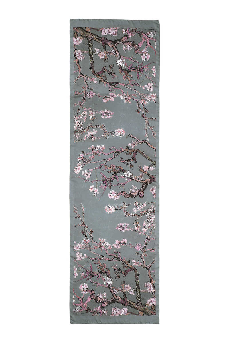 Gri Badem Çiçeği desenli ipeksi kumaş, canlı renklerle şıklık ve enerji katıyor. %100 ipeksi rayon kumaş, 45x160 cm boyutlarıyla pratik kullanım sunar.