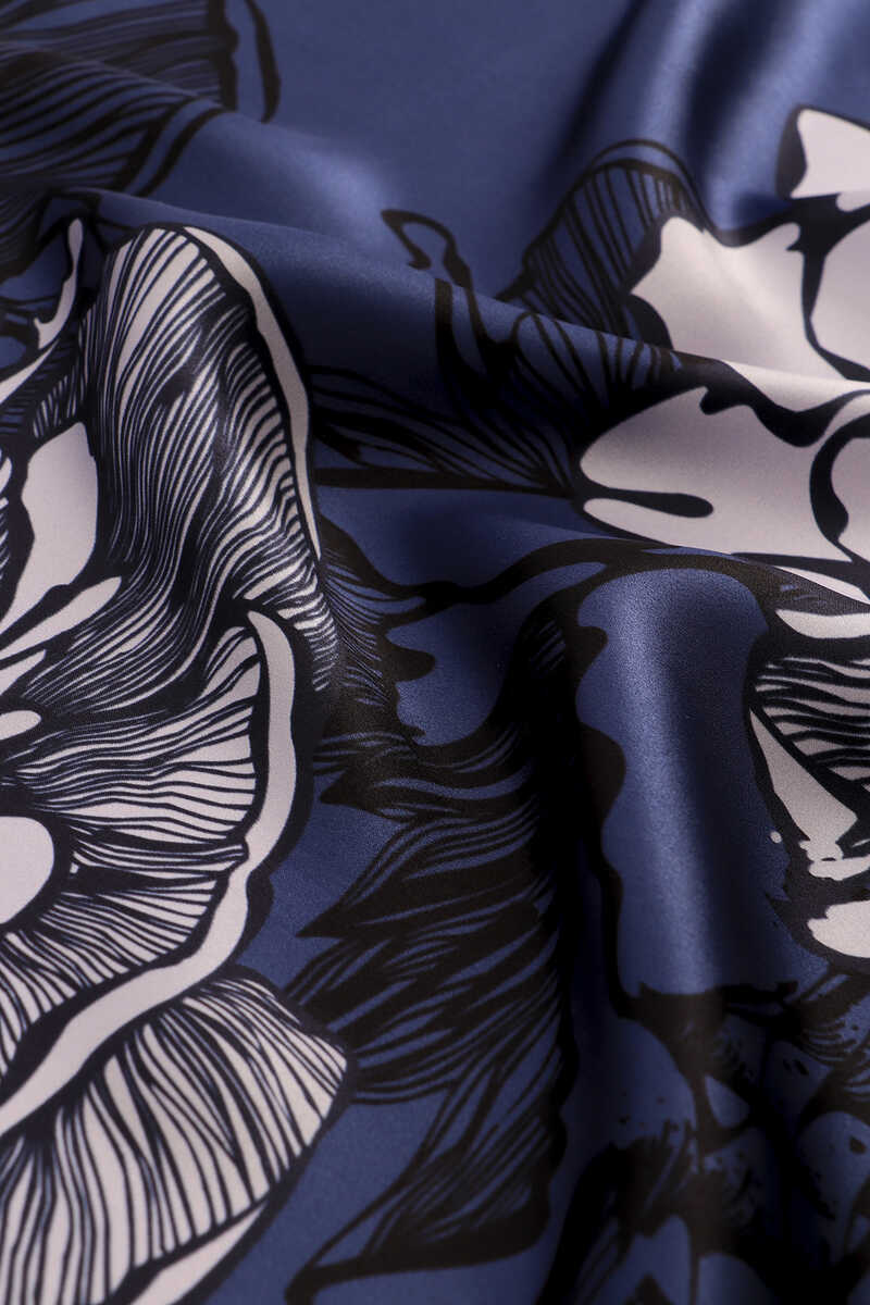 İpeğin eşsiz zarafetine yansıtılmış Lacivert Begonya Desen Sura İpek Eşarp ile sizler de farklı güzellikteki bütünlüğün atmosferini hissedeceksiniz. Ürünümüz; %100 İpek içeriği ile 90x90cm boyutlarıyla kullanım rahatlığı sunuyor.
