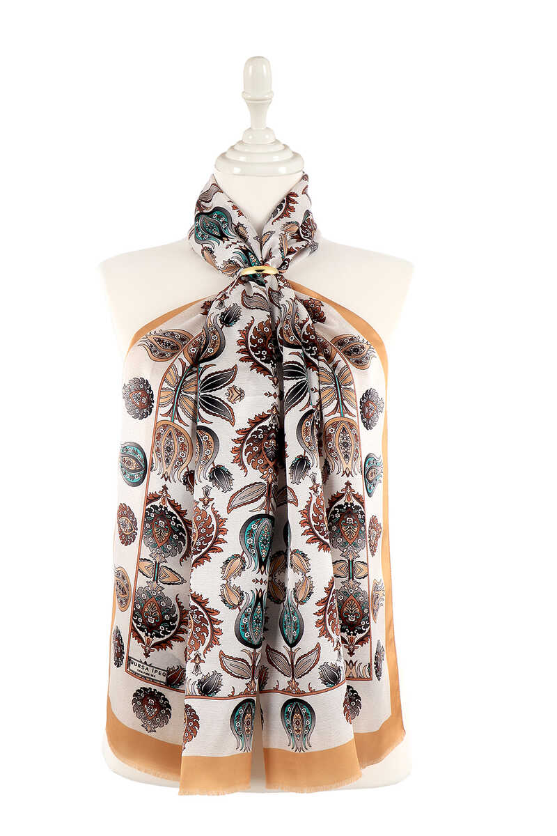 A special model that will add elegance to your style and complement your style from the most serious business meeting to the most elegant art gallery. Our Beige colored Iznik Pattern Silk Foulard model with eye-catching patterns offers ease of use with its 100% silk content and 55x160cm dimensions.