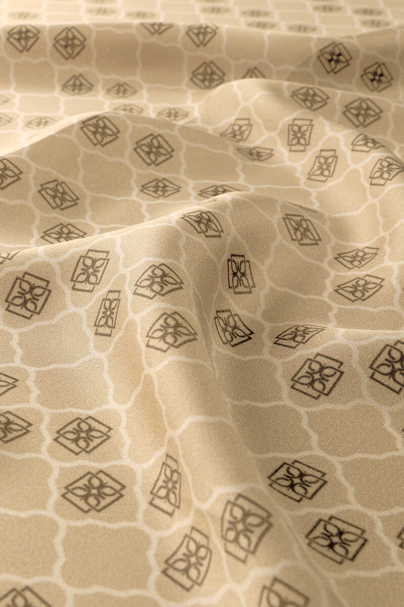 Beige monogamous patterned silk Square Scarf, which is a timeless companion to your classic and sports style; With its upright and solid stance and bright appearance, it adds value to you in the glittering world of fashion. It offers comfort of use with its 100% Silk content and 90x90cm dimensions.