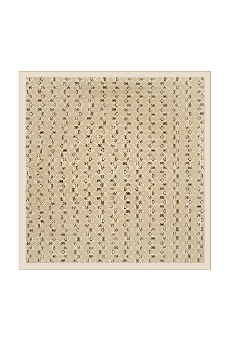 Klasik ve spor stilinize zamansız eşlik eden Bej monogam desenli ipek eşarp; dik ve tok duruşlu yapısı ve parlak görünümü ile modanın ışıltılı dünyasında size değer katıyor.Ürünümüz; %100 İpek içeriği ile 90x90cm boyutlarıyla kullanım rahatlığı sunuyor.
