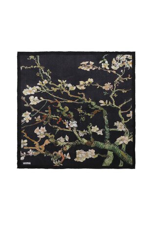 You will also feel the atmosphere of different beauty with the black almond flower pattern reflected on the unique elegance of silk. Our product; It offers comfort of use with its 100% silk content and 55x55cm dimensions.