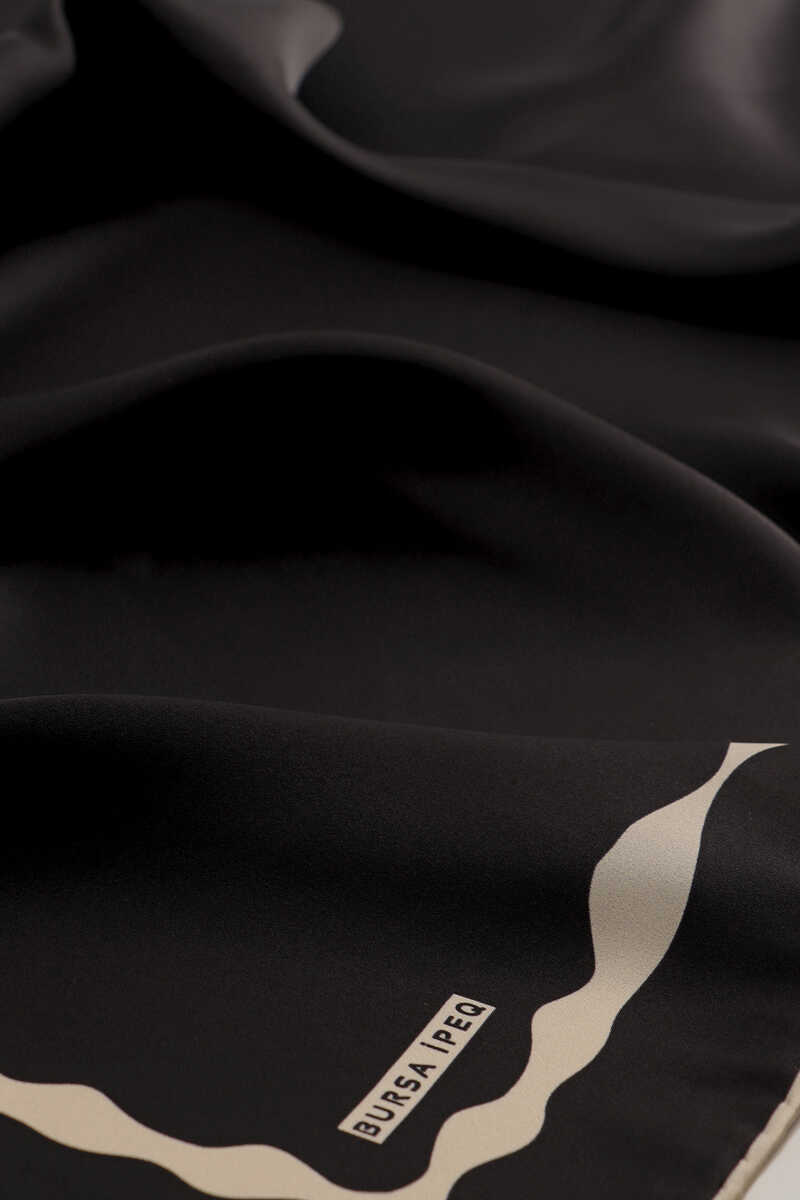 Crowning your plain and simple look, the upright and well-formed black silk Square Scarf with a Watery Wave pattern on the edge appeals to every season with its wide range of colors in its design that symbolizes the emphasis of simplicity, away from all details. Our product; It offers ease of use with its 100% silk content and dimensions of 90x90cm.