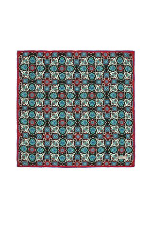 The most special patterns of our traditional heritage meet with silk accompanied by modern interpretations. The indispensable passion of women is Turkish Motif Black Oil Green colored unique Tile Spiral patterned silk Pocket Square model embroidered with unique weaving; It offers you both comfort and traditional elegance with a thick, soft and spacious touch. It offers comfort of use with its 100% silk content and 55x55cm dimensions.