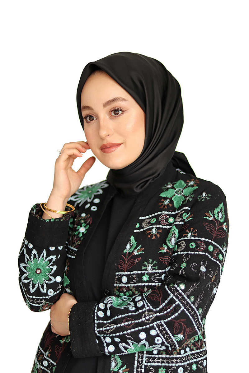 Crowning your plain and simple look, the black colored plain twill silk Square Scarf with an upright and full stance appeals to every season with its wide color range in its design that is far from all details and symbolizes the emphasis of simplicity. It offers comfort of use with its 100% Silk content and 90x90cm dimensions.