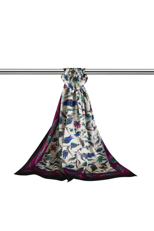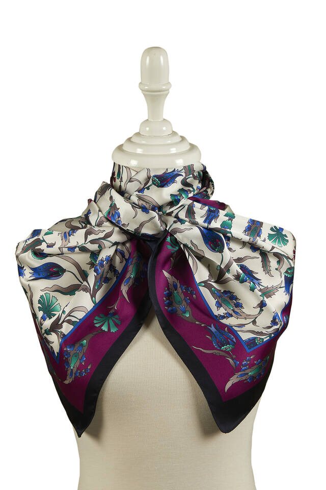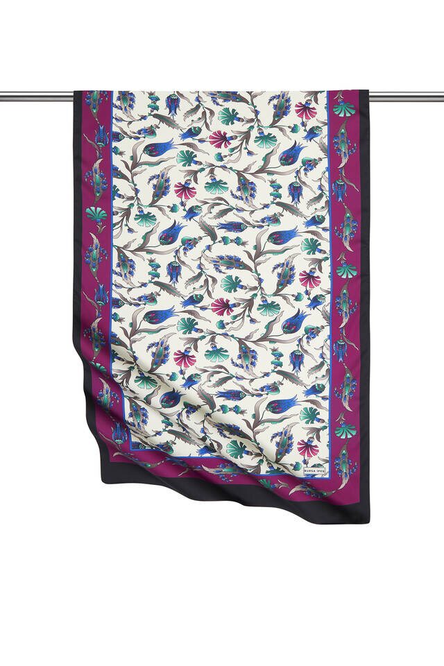 Black Purple Carnation Tulip Pattern Wide Silky Foulard
