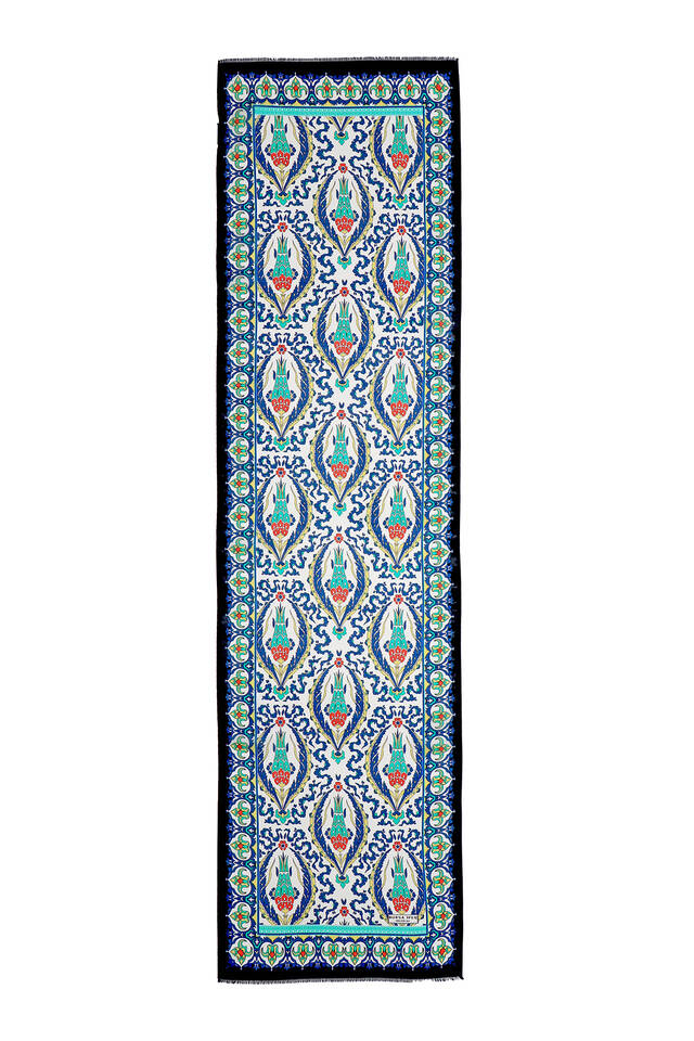 A special model that will add elegance to your style and complement your style from the most serious business meeting to the most elegant art gallery. Our Large Tulip Voile Silk Foulard model in Black Saks color with eye-catching patterns offers ease of use with its 100% silk content and 35x150cm dimensions.
