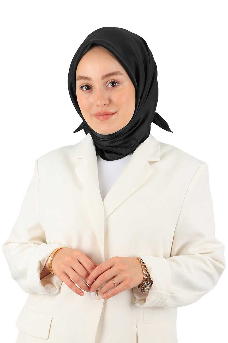 The Black Plain Sura silk Square Scarf, with an upright and solid stance that crowns your plain and simple look, appeals to every season with its wide color range in its design that symbolizes the emphasis of simplicity, away from all details. Our product; It offers ease of use with its 100% silk content and dimensions of 90x90cm.