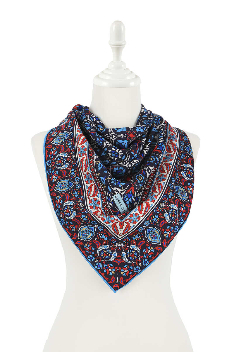 A fun and classic choice where black tile patterns come together with silky fabric texture and bright and vibrant colors… Add energy to life with the silky texture of flowers! Our product: 100% silky rayon fabric offers ease of use with its dimensions of 90x90 cm.