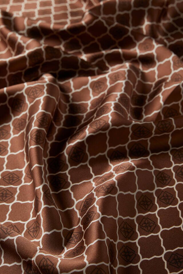 Brown monogamous patterned silk Square Scarf, which is a timeless companion to your classic and sports style; With its upright and solid stance and bright appearance, it adds value to you in the glittering world of fashion. It offers comfort of use with its 100% Silk content and 90x90cm dimensions.