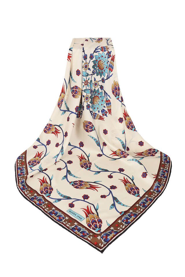 fun and at the same time classic choice where the Brown Row Tulip patterns come together with the silky fabric texture and bright and vibrant colors… Add energy to life with the silky texture of the flowers! Our product: 100% silky rayon fabric offers ease of use with its dimensions of 90x90 cm.