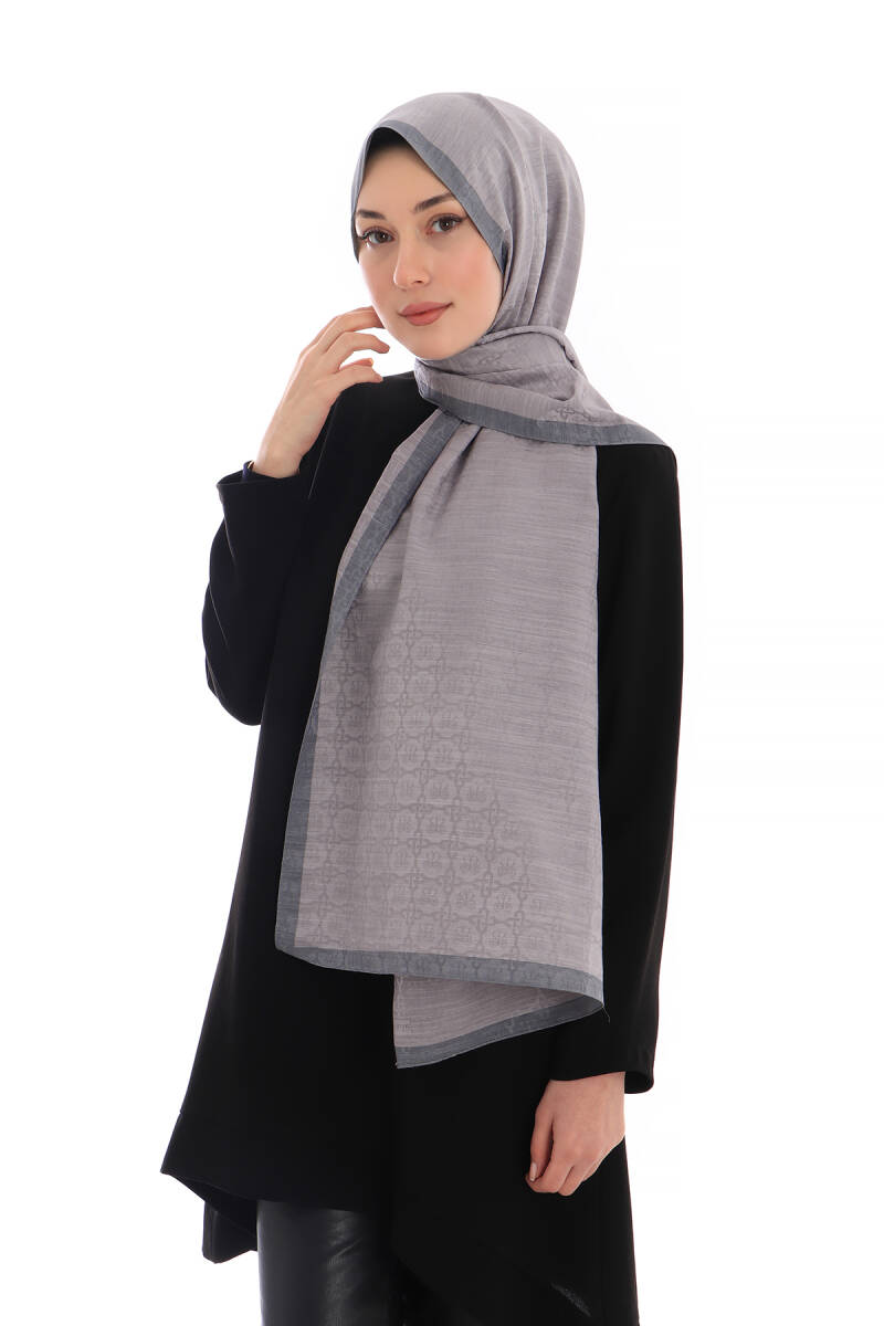 Crafted from a soft blend of silk and cotton, this shawl adds a sophisticated touch to your shawl with its elegant monogram pattern, perfectly complementing classic and modern styles. Our product, with a 50% silk and 50% cotton content, measures 70 x 195 cm and offers comfortable wear.