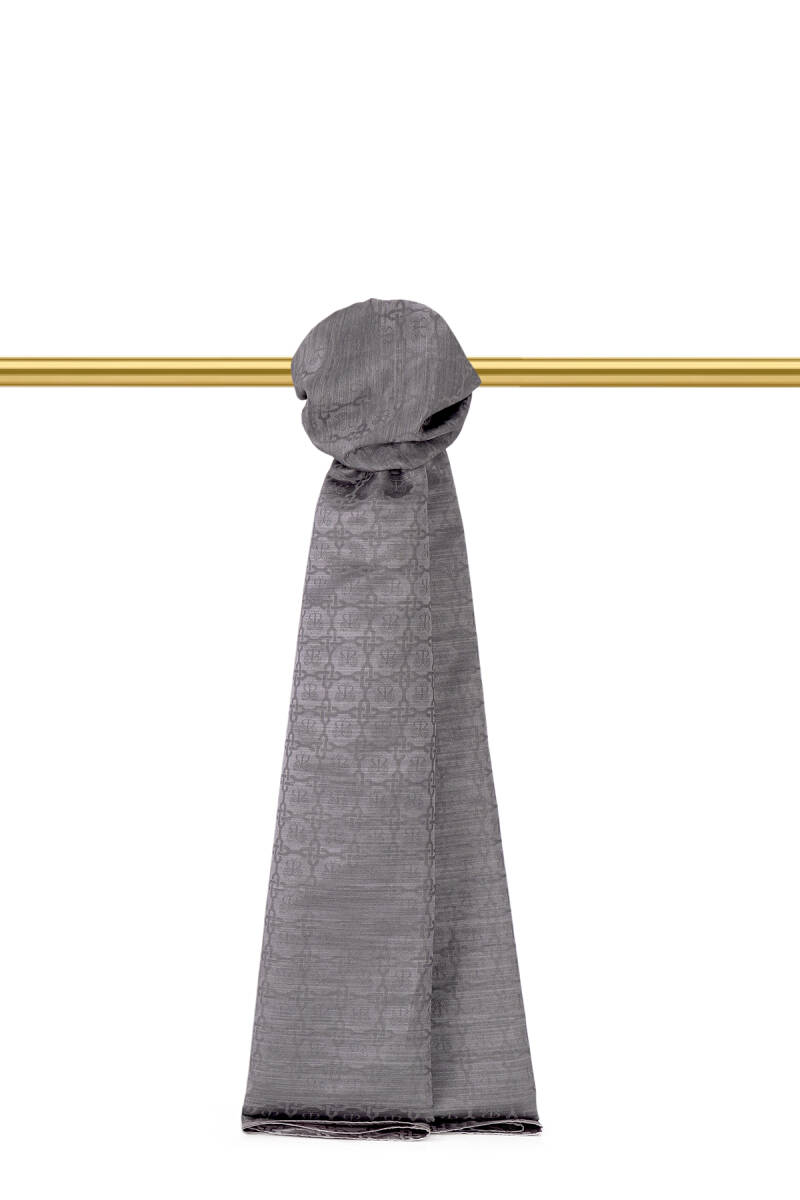 Crafted from a soft blend of silk and cotton, this shawl adds a sophisticated touch to your shawl with its elegant monogram pattern, perfectly complementing classic and modern styles. Our product, with a 50% silk and 50% cotton content, measures 70 x 195 cm and offers comfortable wear.