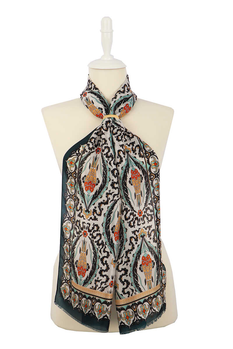 Şıklığınıza şıklık katarken, en ciddi iş toplantısından en zarif sanat galerisine kadar stilinizi tamamlayacak özel bir model. Göz alıcı desenlere sahip Yeşil Taba renkli Vual İpek Fular modelimiz, %100 ipek içeriği, 35x150cm boyutlarıyla kullanım kolaylığı sunuyor.