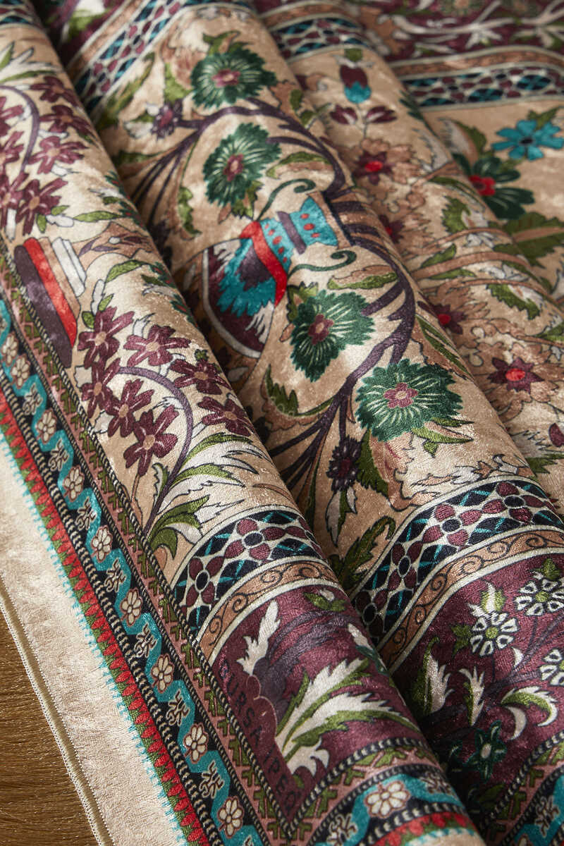 İpeksi dokusu, göz alıcı renkleri ile Türk motifli ve Çini desenli seccade halı modellerimiz dekoratif bir görünüm sunarken kadife dokusu 65x115cm ebatları ile rahat kullanımınız için özel olarak tasarlanmıştır.