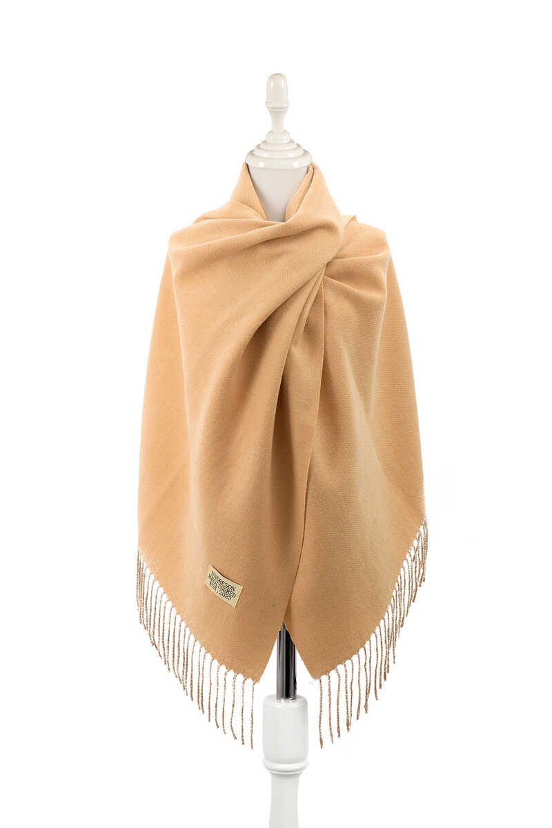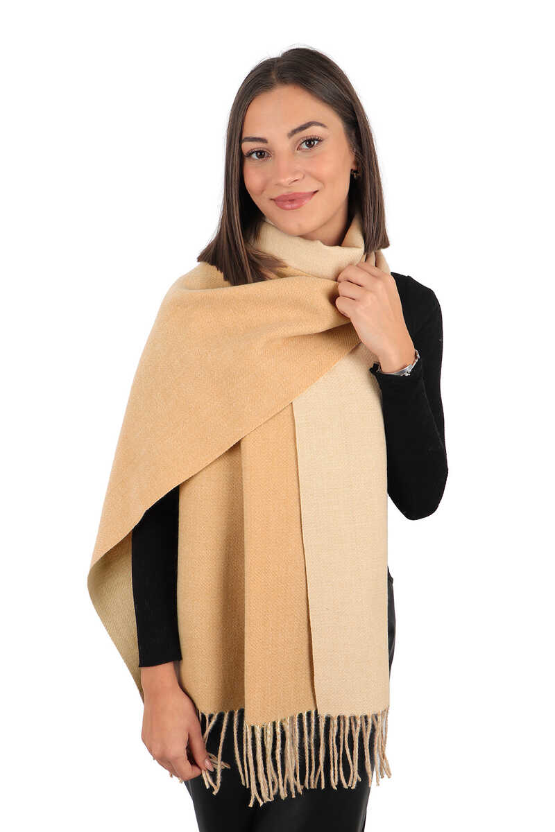 Our Camel Cream Double-Sided Winter Shawl model, with its warming, soft texture and stylish colors, will add value to your elegance and keep you warm in cold weather. Its acrylic fabric offers ease of use with its dimensions of 70x190cm.