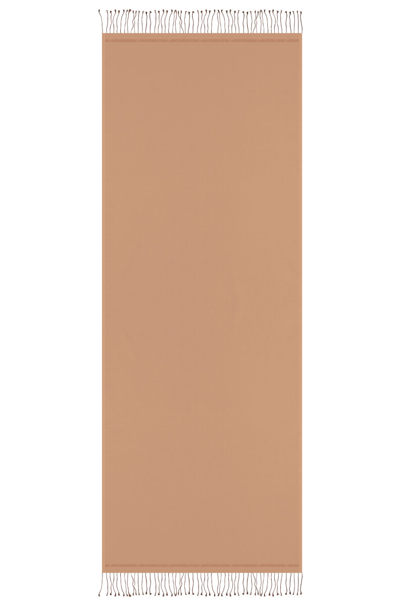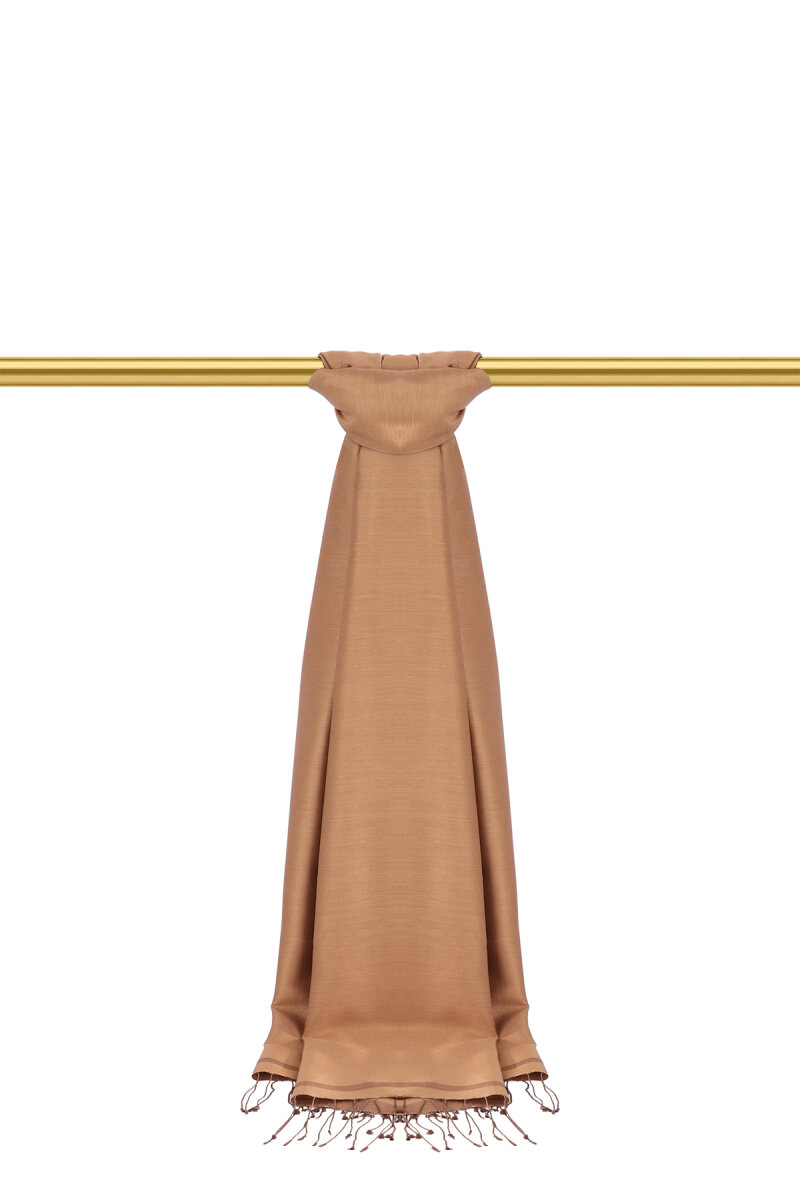 Klasik ve spor stilinize zamansız eşlik eden Camel çift taraflı ipek şal; her iki yüzünün de kullanıma uygun olması, dik ve tok duruşlu yapısı ve parlak görünümü ile modanın ışıltılı dünyasında size değer katıyor.Ürünümüz; %100 İpek içeriği ile 70x200cm boyutlarıyla kullanım rahatlığı sunuyor.