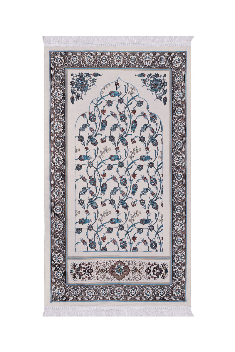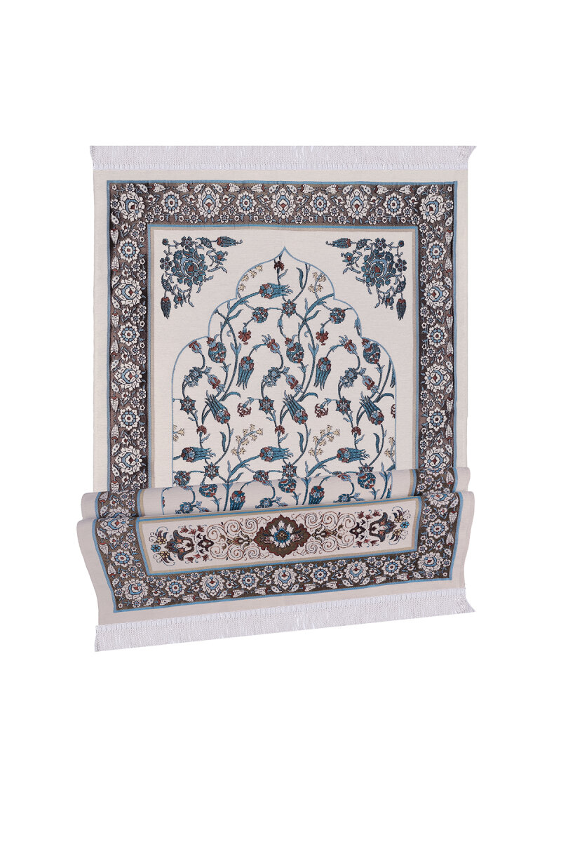 Beyaz Çini Lale Desen Özel Dokuma Seccade