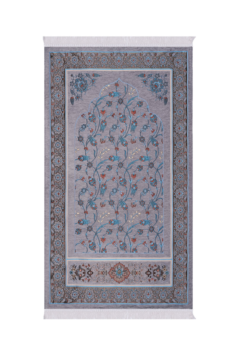 Gri Çini Lale Desen Özel Dokuma Seccade