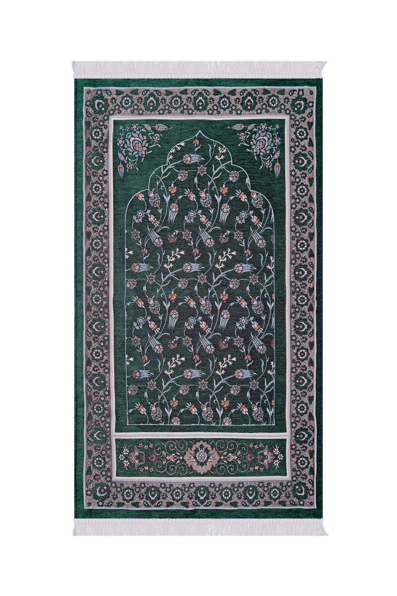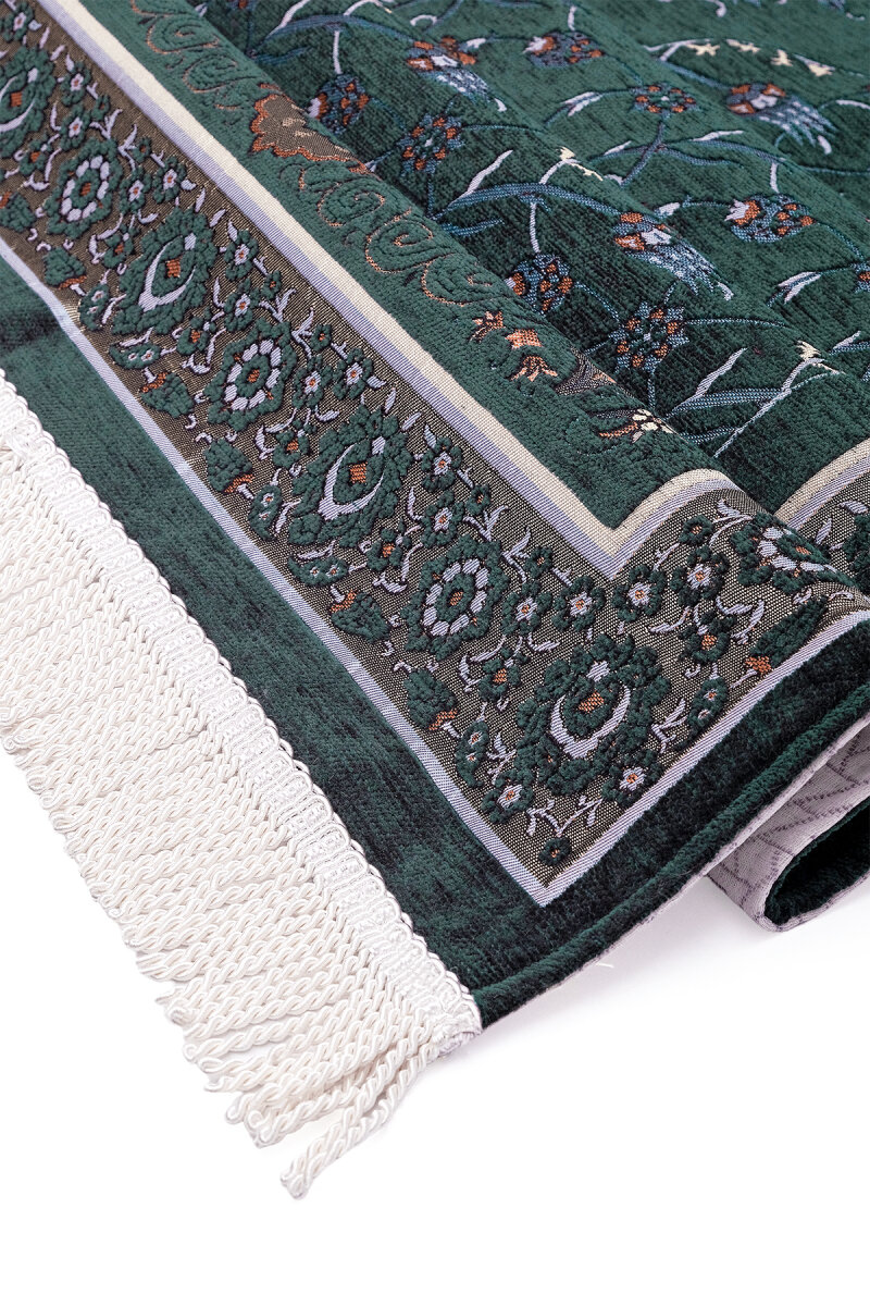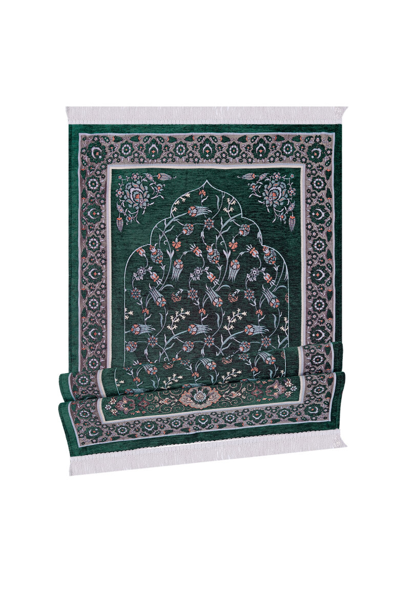 Yeşil Çini Lale Desen Özel Dokuma Seccade