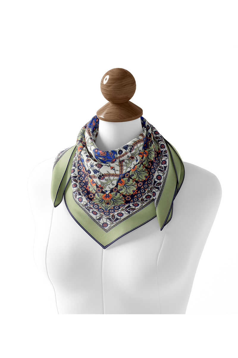 Haki Çini Lale Desen Soft Eşarp