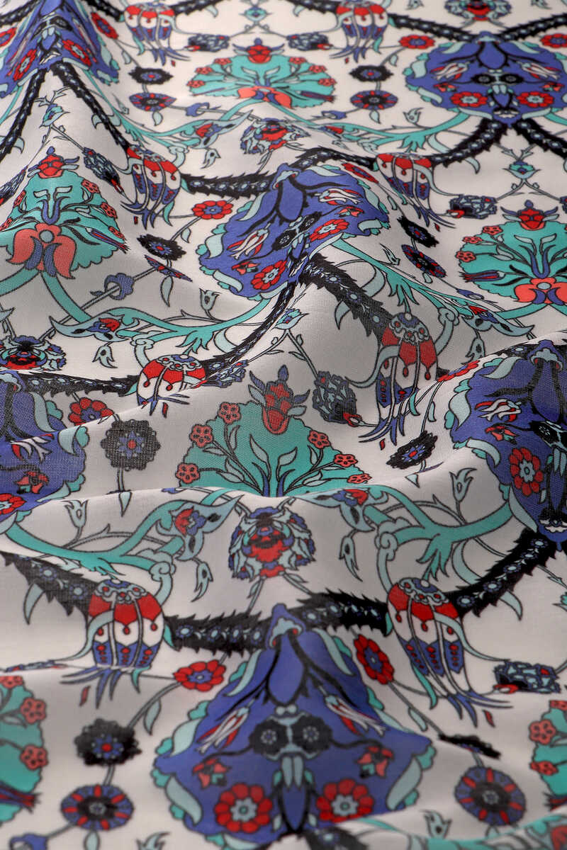 Sıcak yaz günlerinde soft eşarpların dokusu ile kendinizi serinletin. Ürünümüz; mint çini lale desen seçeneğiyle yazlık pamuklu ince dokusu ve 90 x 90 cm boyutlarıyla kullanım rahatlığı sunuyor.
