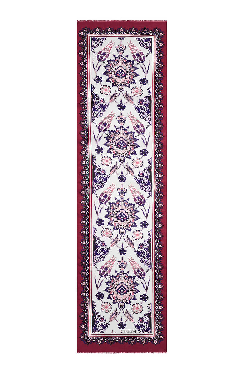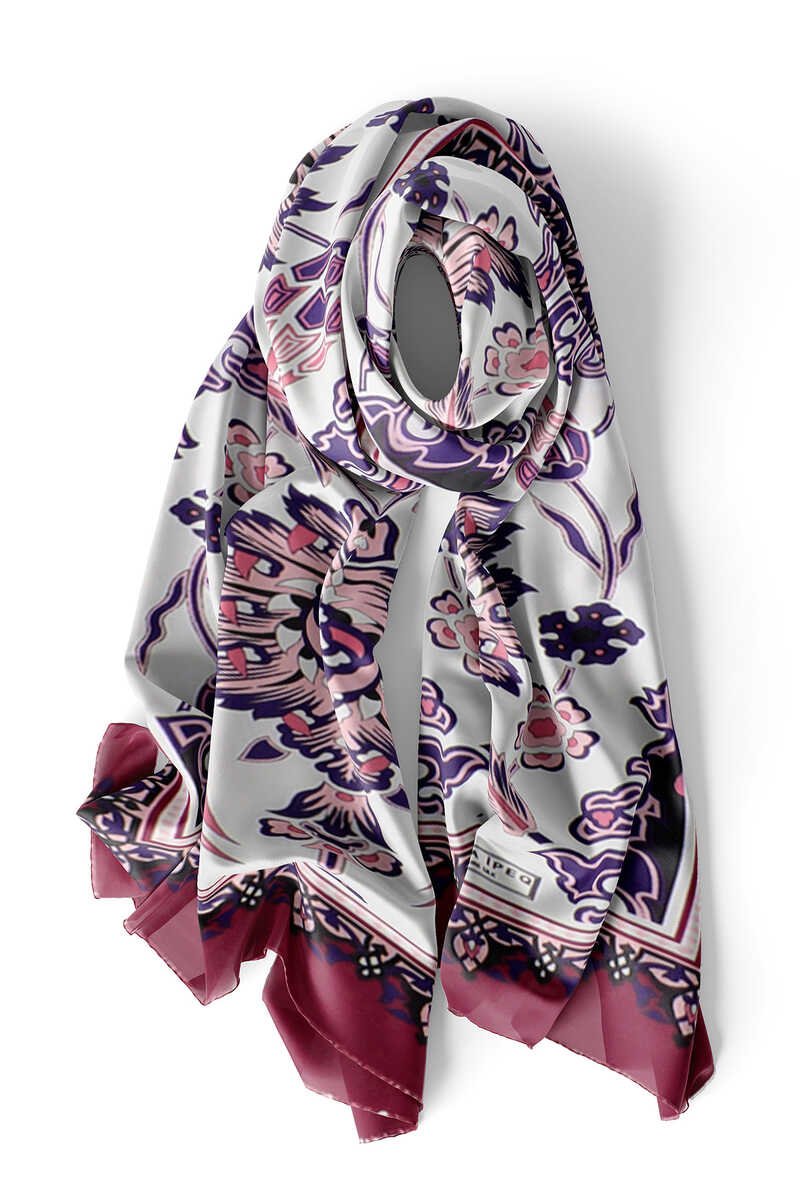 Şıklığınıza şıklık katarken, en ciddi iş toplantısından en zarif sanat galerisine kadar stilinizi tamamlayacak özel bir model. Göz alıcı desenlere sahip Vişne Mor renkli Çini Lale Vual İpek Fular modelimiz, %100 ipek içeriği, 35x150cm boyutlarıyla kullanım kolaylığı sunuyor.