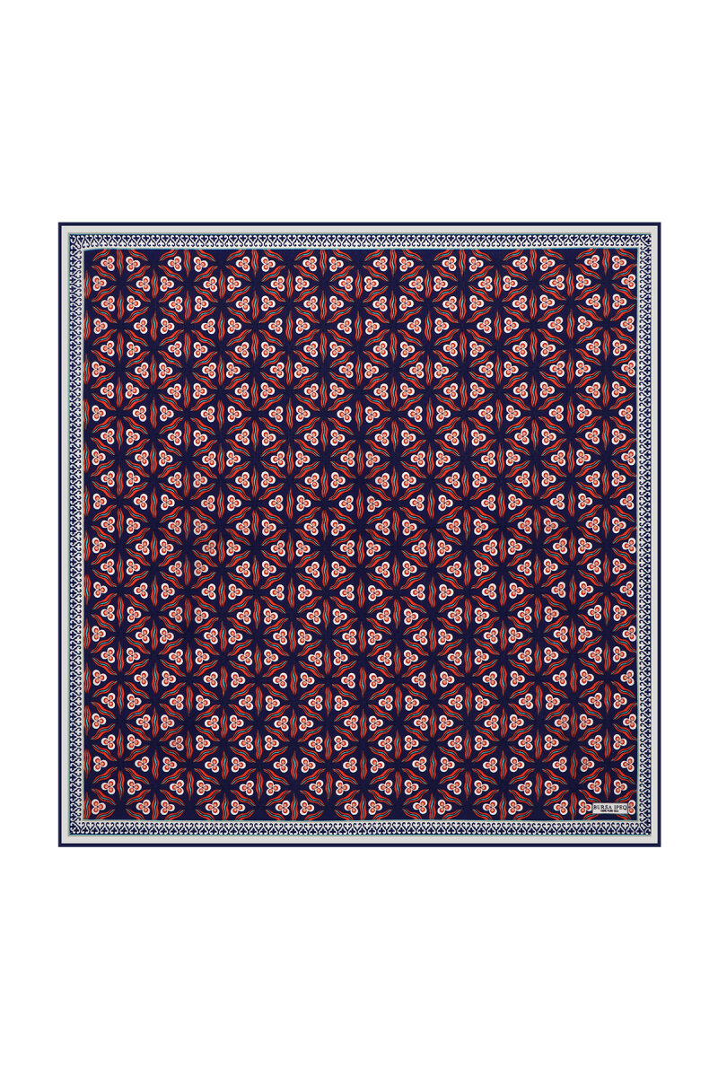 Geleneksel mirasımızın en özel desenleri modern yorumlar eşliğinde ipek ile buluşuyor.Kadınların vazgeçilmez tutkusu eşsiz dokumayla işlenen Türk Motifli Lacivert Kırmızı renkli benzersiz Çintemani desenli ipek mendil modelimiz; kalın, yumuşak ve ferah bir dokunuşla size hem konforu hem de gelenekselleşen şıklığı sunuyor.Ürünümüz; %100 İpek içeriği ile 55x55cm boyutlarıyla kullanım rahatlığı sunuyor.