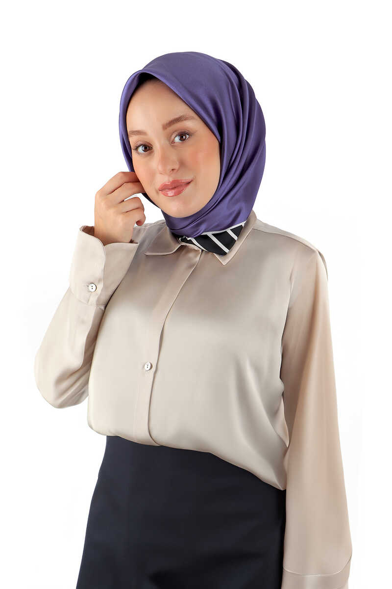 The Purple colored silk Square Scarf with a Juicy Line pattern on the edge, with an upright and firm stance that crowns your plain and simple look, appeals to every season with its wide color range in its design that symbolizes the emphasis of simplicity, away from all details. Our product; It offers ease of use with its 100% Twill Silk content and dimensions of 90 x 90cm.