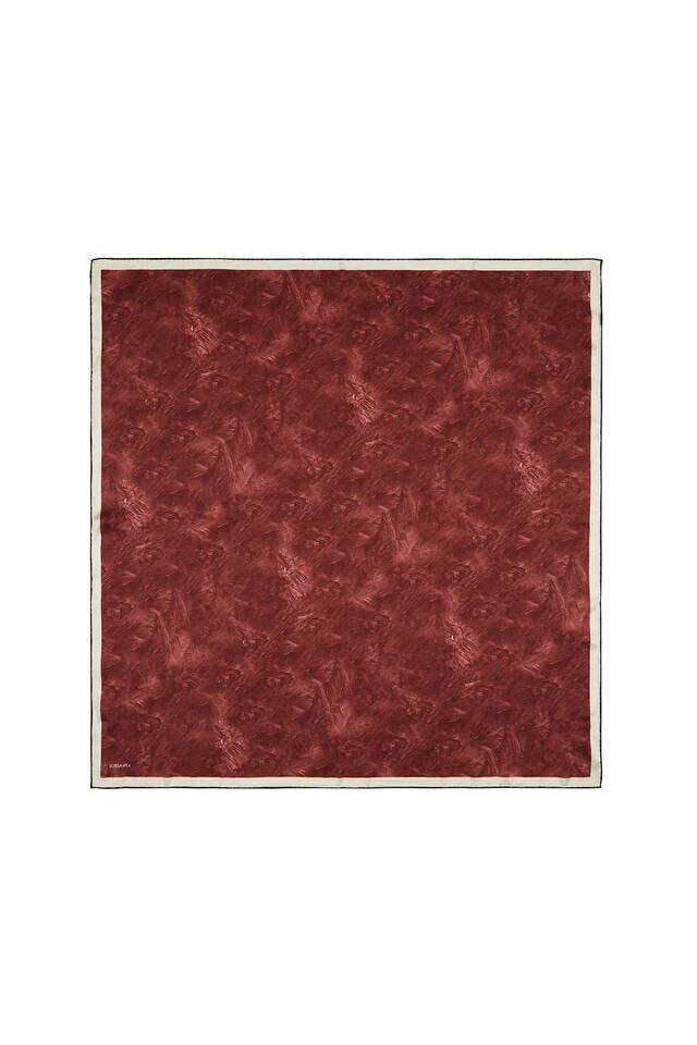 A timeless accompaniment to your classic and sports style, the burgundy brush patterned silk Square Scarf; With its upright and solid stance and bright appearance, it adds value to you in the glittering world of fashion. It offers comfort of use with its 100% Silk content and 90x90cm dimensions.