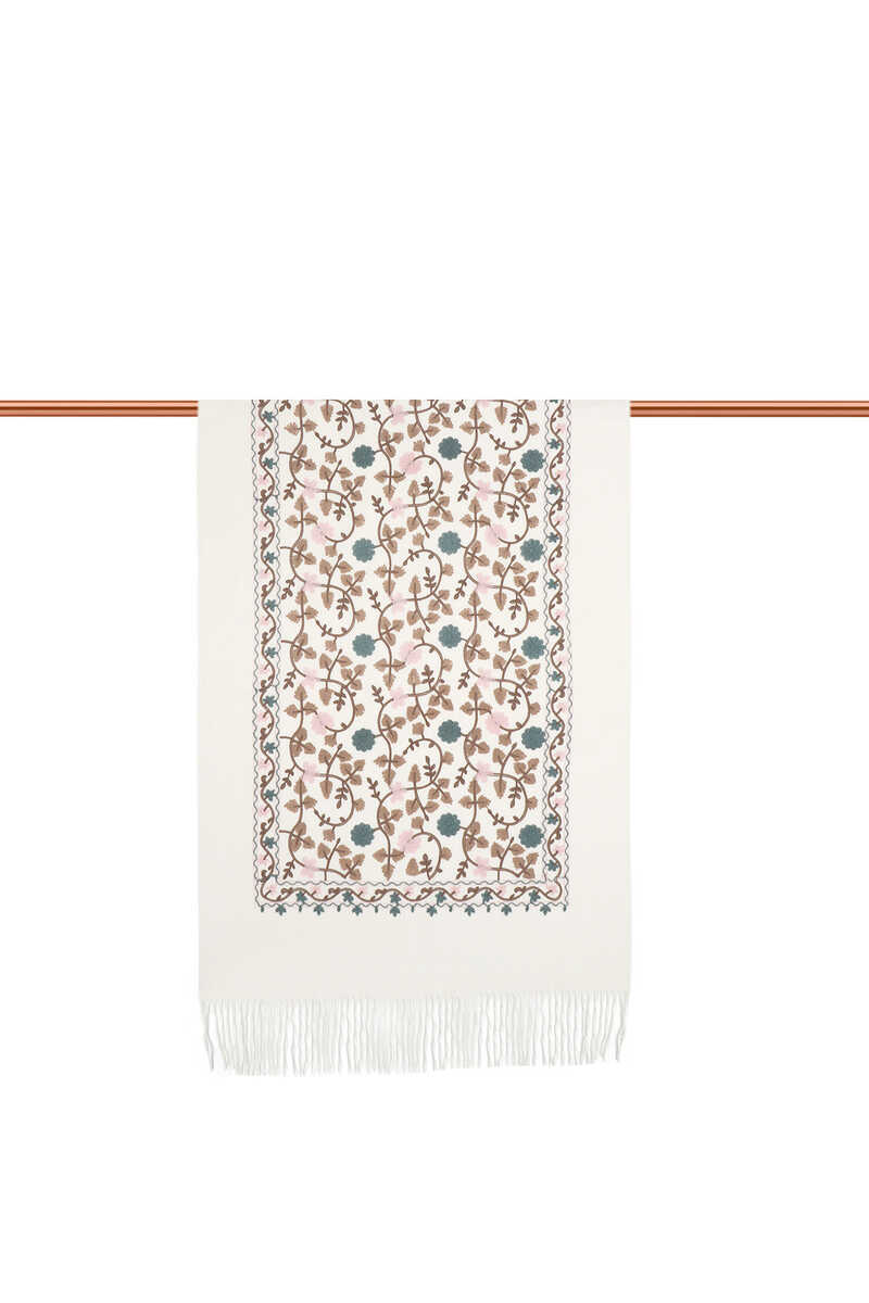 Our Cream Embroidered Winter Shawls, carefully produced to keep you warm on cool winter days, attract attention with their colors and patterns. Our product offers ease of use with its acrylic content and dimensions of 70x190 cm.