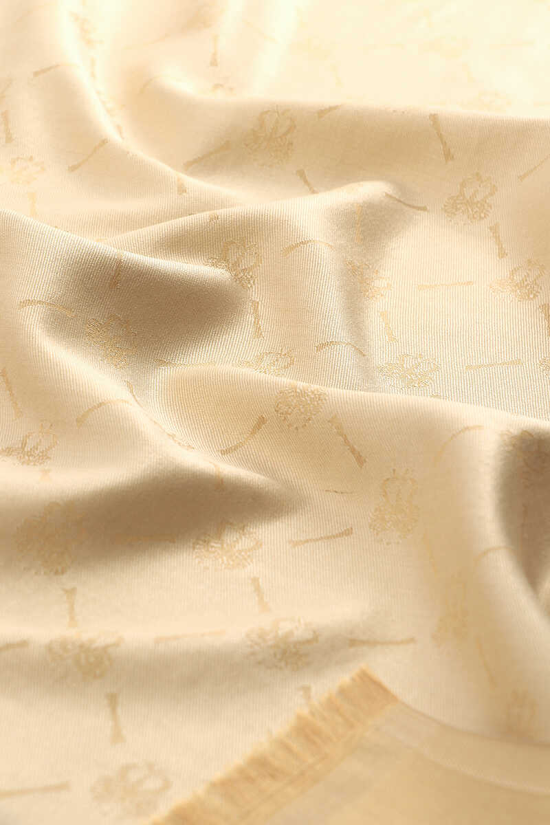 Cream Monogram Pattern Jacquard Silk Scarf